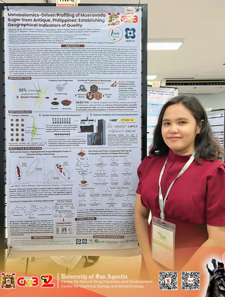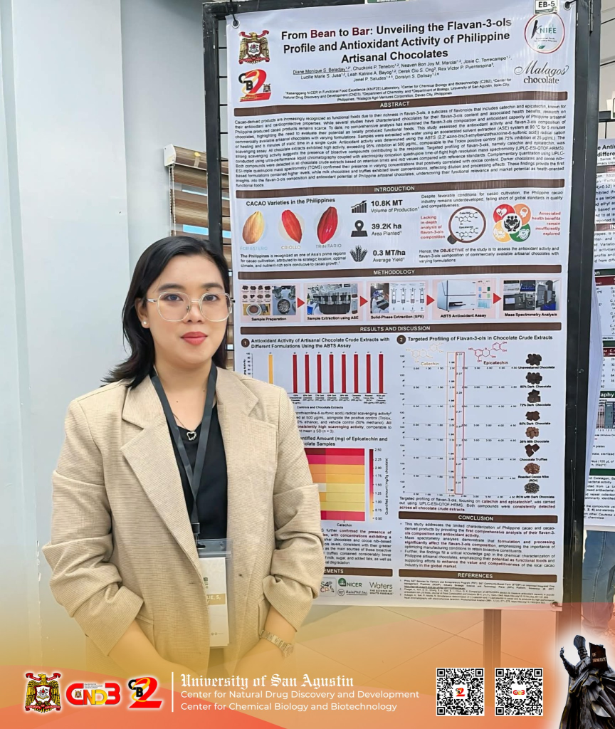 USA – C2B2 and CND3 were represented by Mr. Chuckcris Tenebro, Mr. Neaven Bon Joy Marcial, Ms. Leah Katrine Bayog, Ms. Diane Monique Baladjay, Ms. Lucille Marie Jusa, Ms. Josie Torrecampo, and Ms. Nicole Garcia, who presented their scientific posters highlighting the Universityโ€™s ongoing work in natural products chemistry and molecular biology.