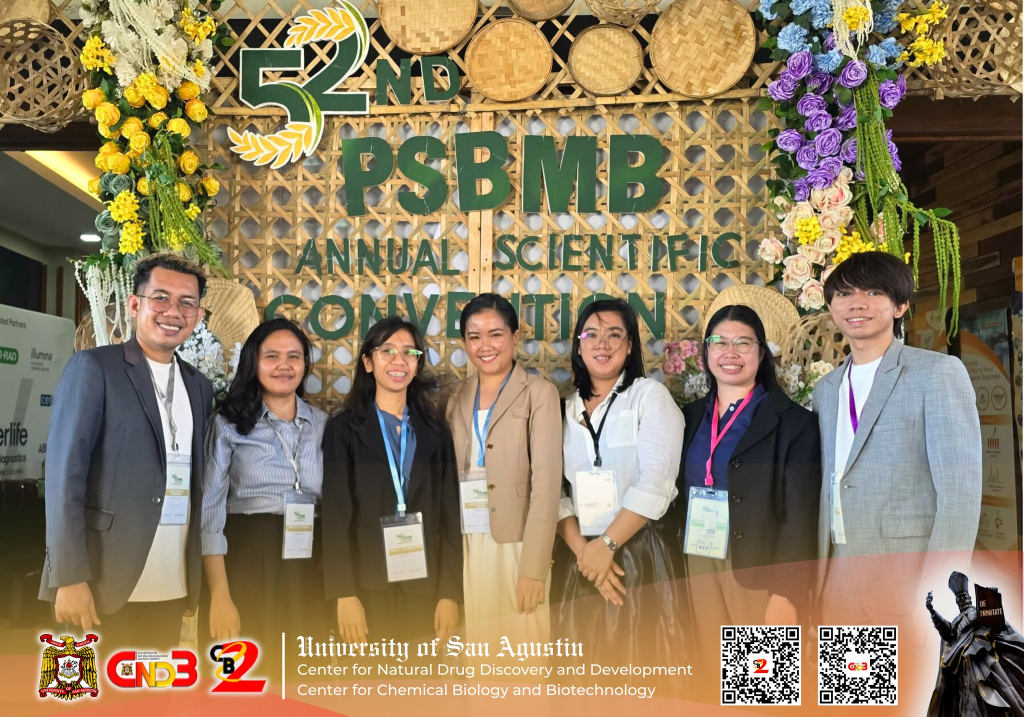 The University of San Agustin – Center for Chemical Biology and Biotechnology (C2B2) and Center for Natural Drug Discovery and Development (CND3) participated in the 52nd Philippine Society of Biochemistry and Molecular Biology (PSBMB) Annual Scientific Convention held on December 2 – 5, 2025, at the DA-CBC Plenary Hall, Philippine Rice Research Institute, Science City of Muรฑoz, Nueva Ecija.