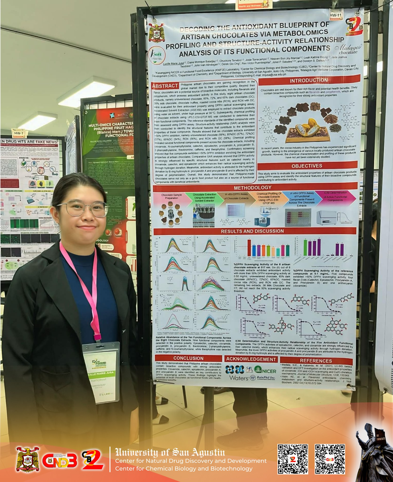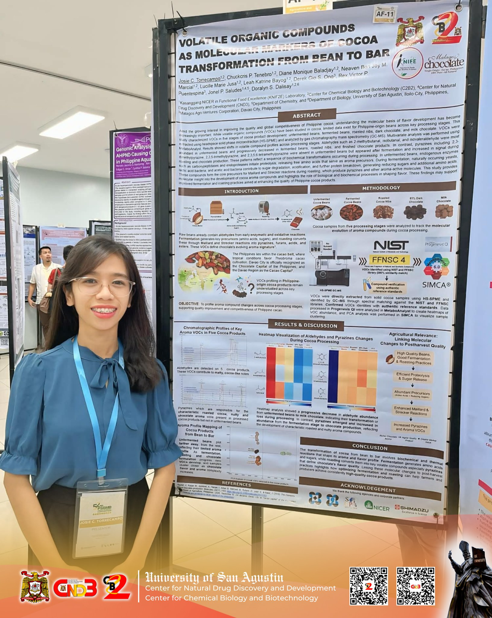 USA – C2B2 and CND3 were represented by Mr. Chuckcris Tenebro, Mr. Neaven Bon Joy Marcial, Ms. Leah Katrine Bayog, Ms. Diane Monique Baladjay, Ms. Lucille Marie Jusa, Ms. Josie Torrecampo, and Ms. Nicole Garcia, who presented their scientific posters highlighting the Universityโ€™s ongoing work in natural products chemistry and molecular biology.